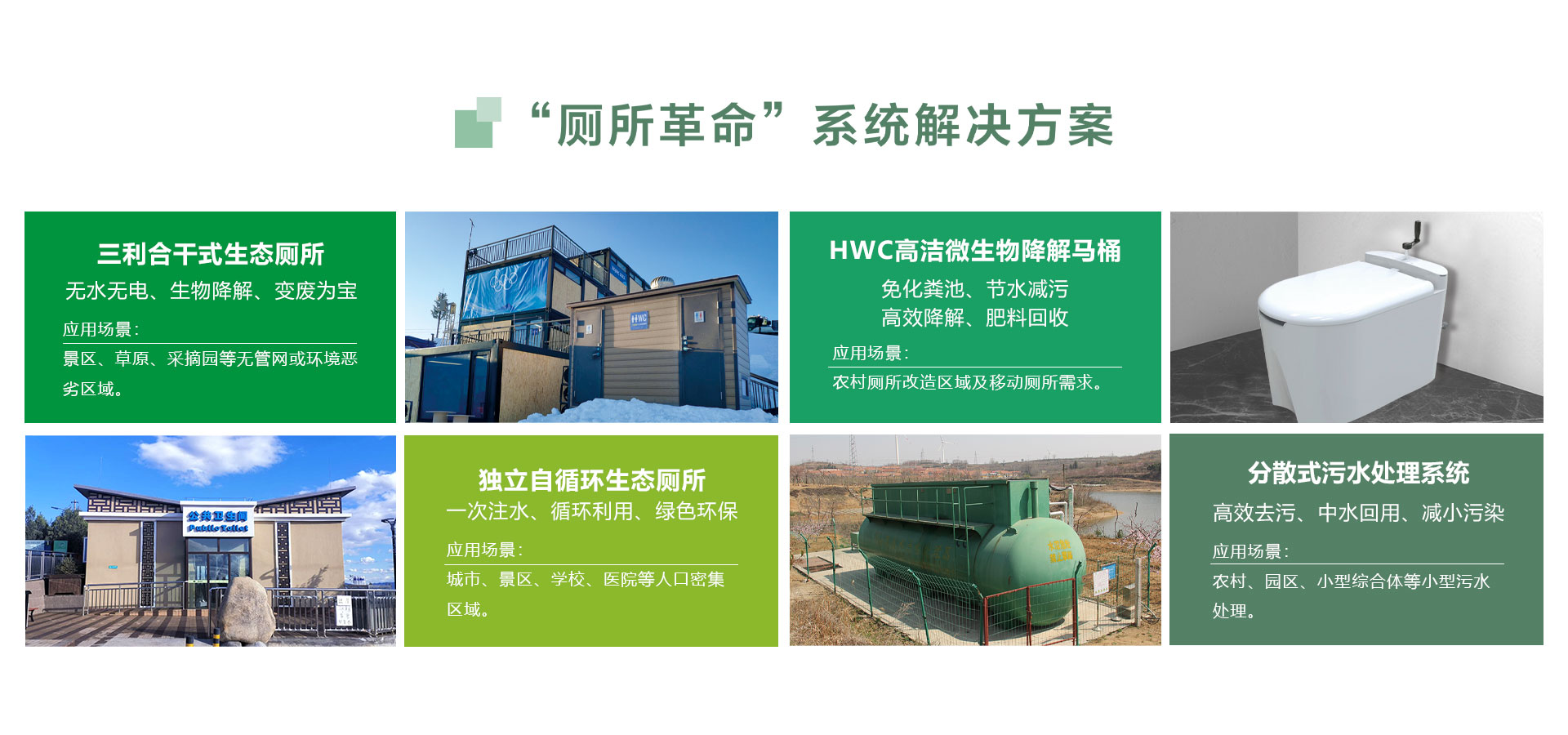 ?我們專注于“源頭”上的廁所革命,系統解決景區(qū)(點)、城市和農村三大領域的實際需求,是真正意義上的生態(tài)環(huán)保廁所。